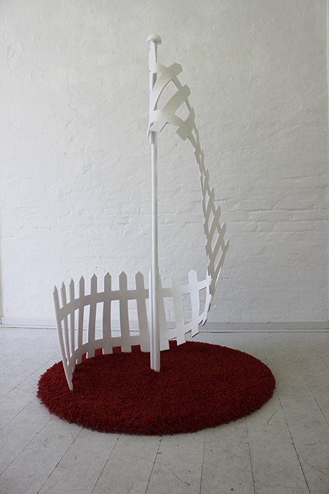 Materiale: ryatæppe, flagstang, filt, mdf.