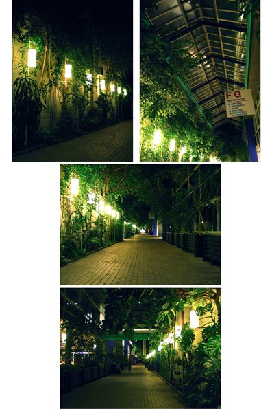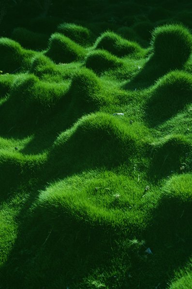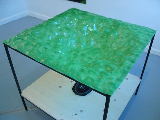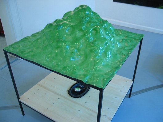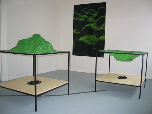 Udstillingen fortsatte med to landskaber i grøn transparent glasfiber i værket Twilight, hvorunder der spilledes musik, en fotoserie og et stort foto. Musikken til Twilight, der er komponeret af Jakob Myrhøj, ligger et sted i mellem Casper David Friedrich’s Der Wanderer über dem Nebelmeerog en David Lynch stemning i forlystelsesparken på Coney Island, New York. Musikken følger landskabernes form, bevæger sig op og ned i hver sin højtaler, som en tåge der ligger tungt og flyder ud under de lette svævende landskaber. Motivet i fotoserien Grænseland er fra gange med ovenlys, et sted hvor jeg altid får en diffus oplevelse af at være både inde og ude på samme tid. Det store fotografi Hills in Haifa er et nærbillede af et kultiveret landskab taget i en tempelhave i Haifa, Israel.