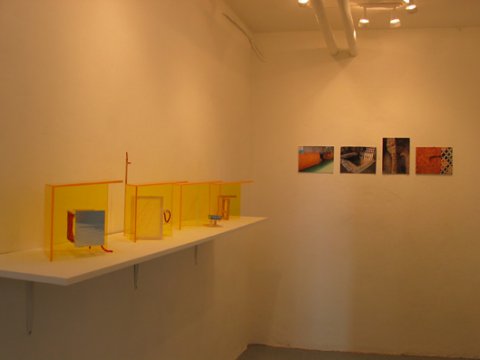 I galleriets mindste rum viste jeg en serie af transparente gule akryl hushjørner, og sammen med dem fotoserien ”Doorways” fra 2005.
