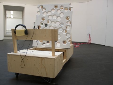 Finér, hjul, hvid Carrara marmor og en lydkomposition i 7 takter af Michael Nielen.
