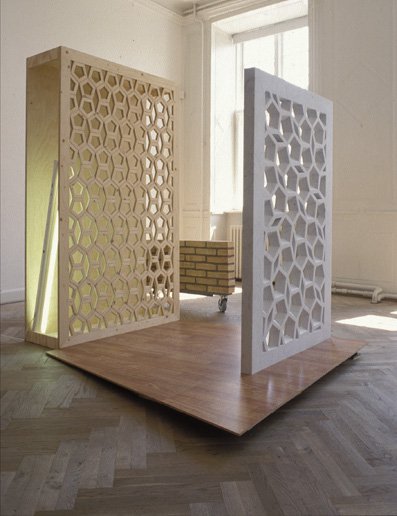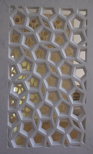 Et møde i Indien med Mogulernes arkitektur og den måde, hvorpå de med hulmønstre i væggene tilførte en transparens og åbenhed udadtil, samtidig med at de dannede lukkede rum, inspirerede til dette værk med de femkantede hulmønstre i marmor og træ.